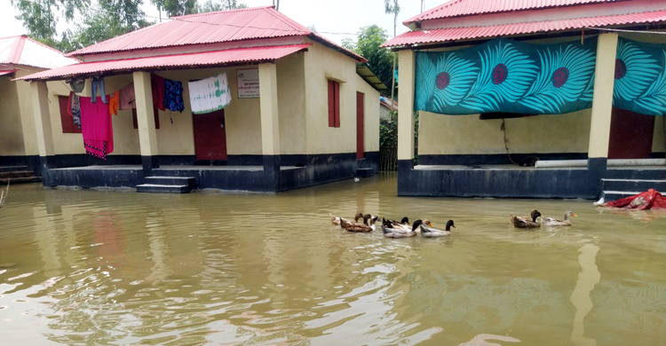 সরেজমিনে দেখা গেছে, থানাহাট ইউনিয়নের ৮নম্বর ওয়ার্ডের সবুজপাড়া এলাকায় বিলের মধ্যে সদ্য নির্মিত হরিজন পল্লির চারদিকে পানি থৈ থৈ করছে। সড়কপথ না থাকায় কোমর সমান পানি ডিঙিয়ে বিশুদ্ধ পানি ও খাদ্যের সন্ধানে বের হতে হচ্ছে তাদের।