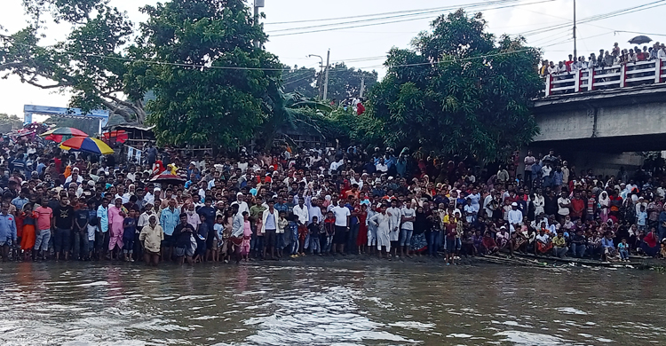 নৌকাবাইচ দেখতে আত্রাইয়ের দুপাড়ে হাজারো মানুষের ঢল