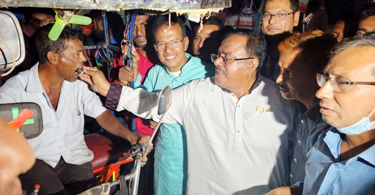 নওগাঁয় রিকশাচালক-পথচারীদের মিষ্টি খাওয়ালেন খাদ্যমন্ত্রী