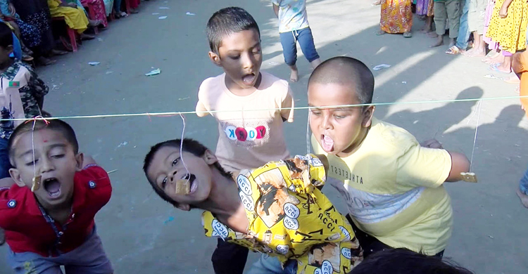 কুড়িগ্রামে হাঁস ধরা-বালিশ খেলা দেখতে উৎসুক জনতার ভিড়