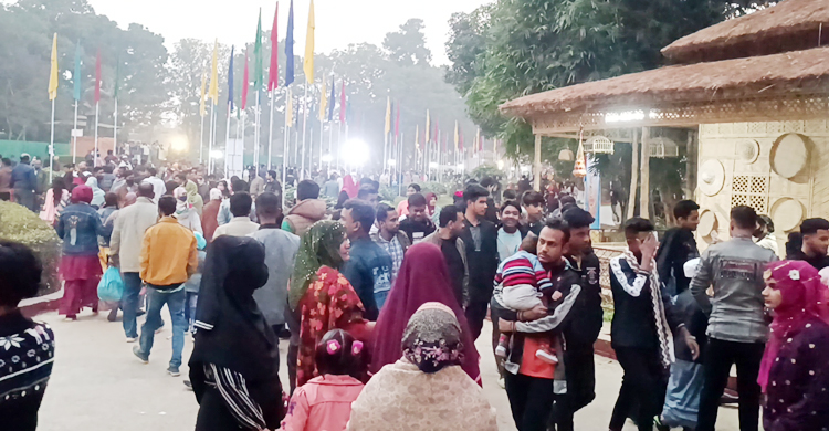 শীত উপেক্ষা করে কারুশিল্প মেলায় দর্শনার্থীদের উপচেপড়া ভিড়