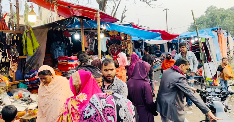 বৃহস্পতিবার (২৫ জানুয়ারি) জয়পুরহাটের রেলওয়ে হকার্স মার্কেট ও ফুটপাত মার্কেটের পুরোনো পোশাকের দোকানগুলো ঘুরে দেখা গেছে নিম্ন ও মধ্যম আয়ের মানুষের ভিড়।