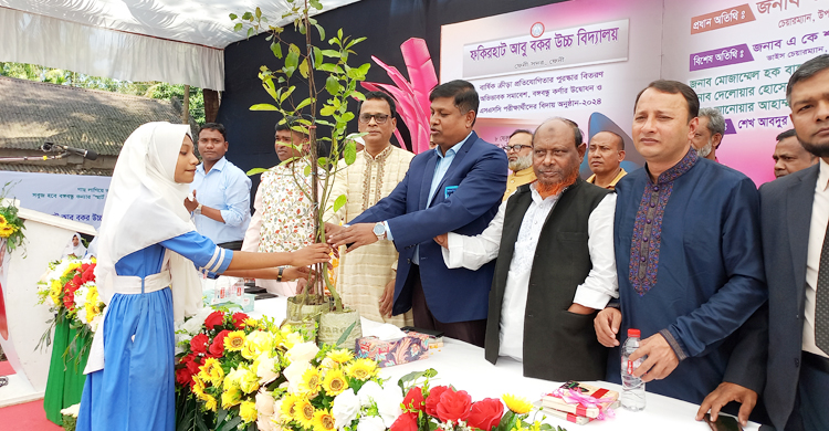 বৃহস্পতিবার (৮ ফেব্রুয়ারি) দুপুরে ফেনী সদর উপজেলার বালিগাঁও ইউনিয়নের ফকিরহাট আবু বক্কর উচ্চ বিদ্যালয়ে আয়োজিত অনুষ্ঠানে শিক্ষার্থীদের হাতে সাত শতাধিক ফলজ, বনজ ও ওষুধি গাছ তুলে দেওয়া হয়।