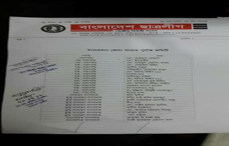 বান্দরবান ছাত্রলীগের ১২১ সদস্যের পূর্ণাঙ্গ কমিটি