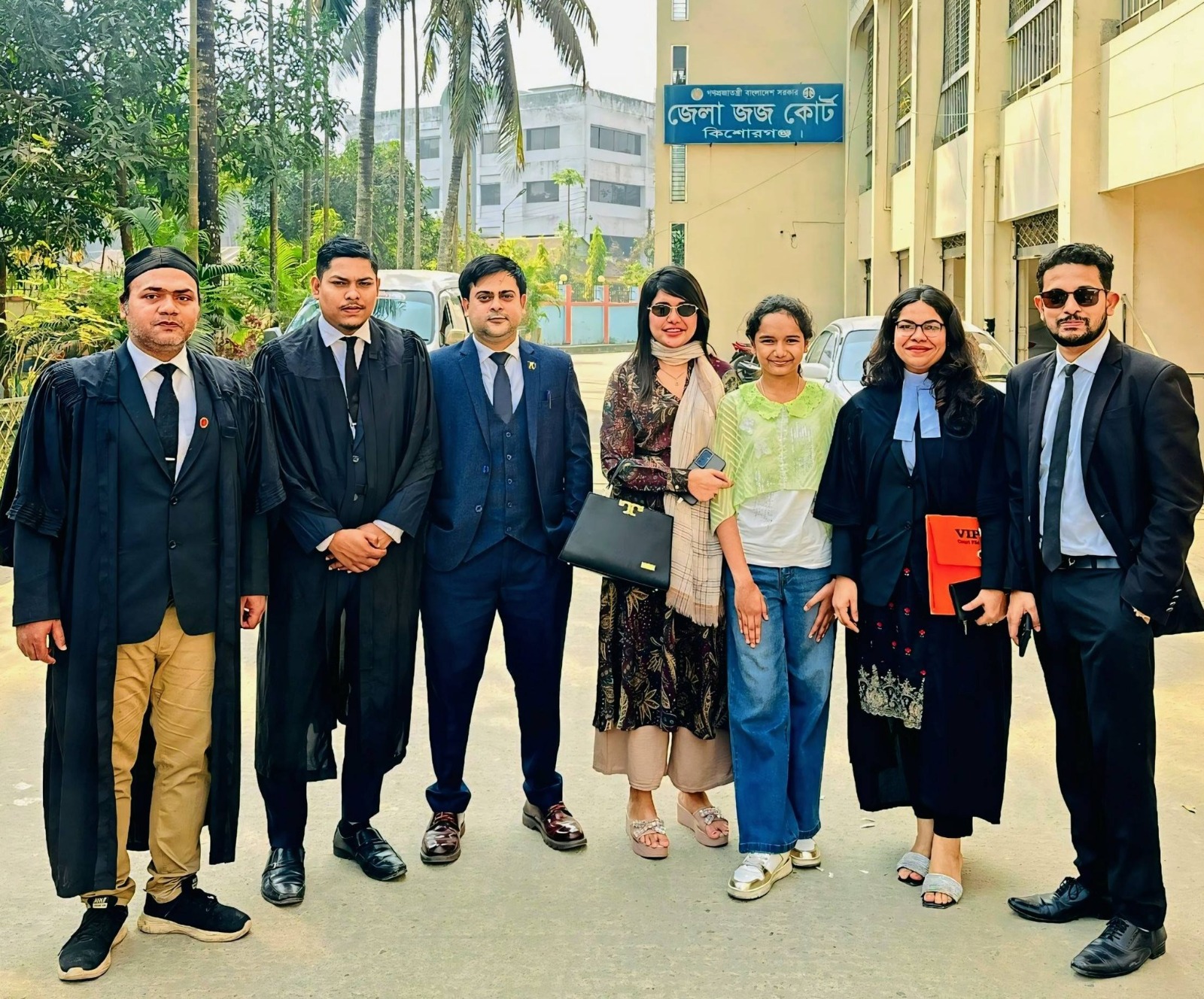 মামলা জয়ের পর মেয়ে ও আইনজীবীদের সঙ্গে ছবিটি পোস্ট করেন তনি