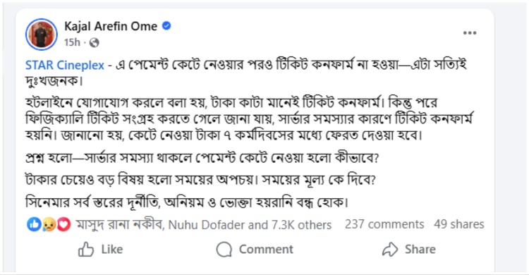 স্টার সিনেপ্লেক্সের টিকিট নিয়ে ভোগান্তির শিকার সাধারণ দর্শকের প্রতিক্রিয়া