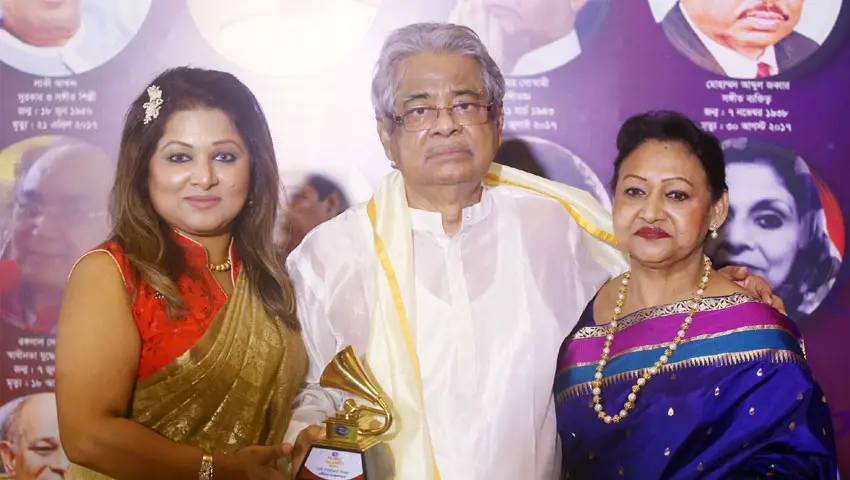বাবার প্রতিকৃতির সামনে মা ও ভাইয়ের সঙ্গে দিঠি আনোয়ার