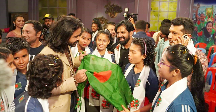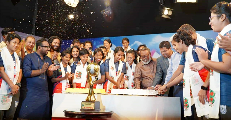 সাফ চ্যাম্পিয়নশিপ জয়ী মেয়েদের সঙ্গে ‘দামাল’ টিম