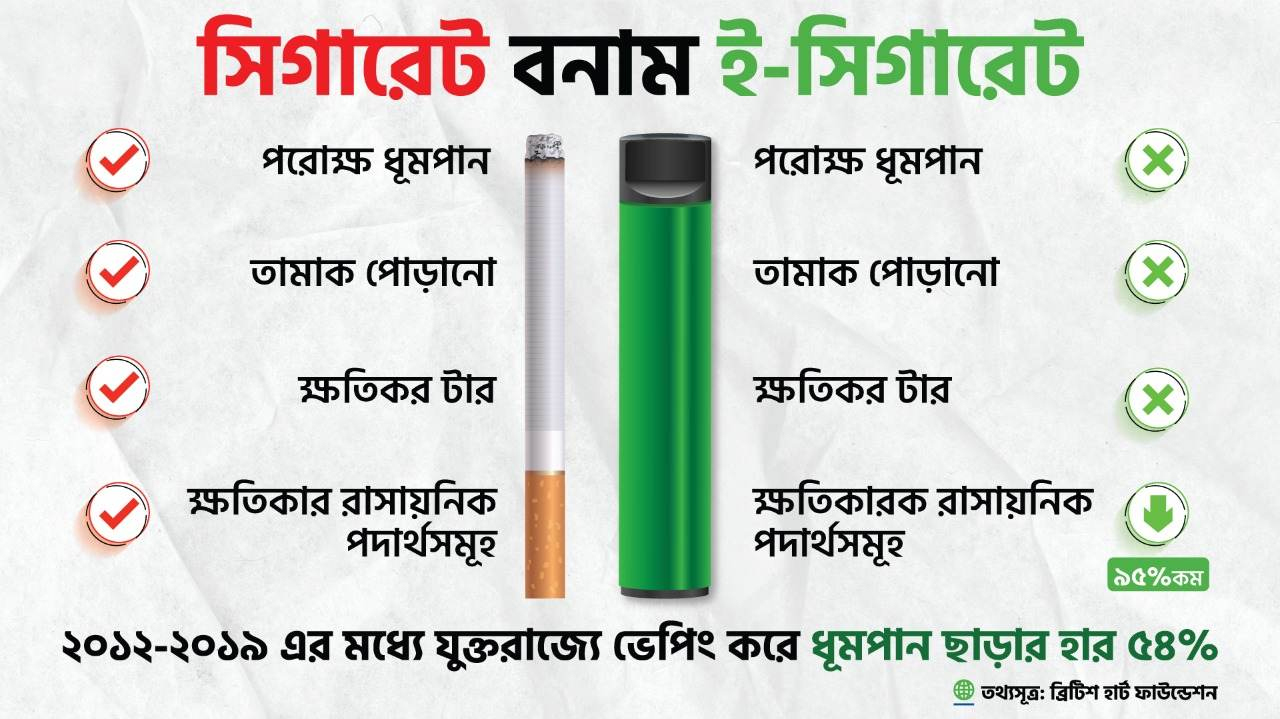 ‘কোনো বাছবিচার ছাড়া কয়েকটি দেশের অনুসরণে ভেপিং নিষিদ্ধ করার দাবি তোলা হচ্ছে। কিন্তু পর্যালোচনা করা দরকার, ওই দেশগুলোতে ভেপিং নিষিদ্ধে আদৌ কোনো সুফল এসেছে কিনা নাকি জনস্বাস্থ্য পরিস্থিতির জন্য এমন সিদ্ধান্ত নেতিবাচক হয়েছে।’