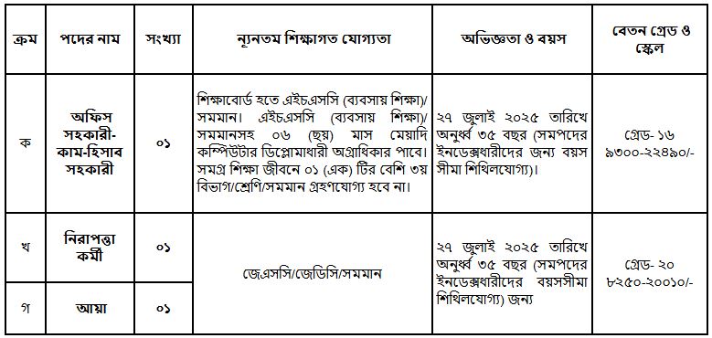 বয়স: ২৭ জুলাই ২০২৫ তারিখে অনূর্ধ্ব ৩৫ বছর (সমপদের ইনডেক্সধারীদের জন্য বয়সসীমা শিথিলযোগ্য)।