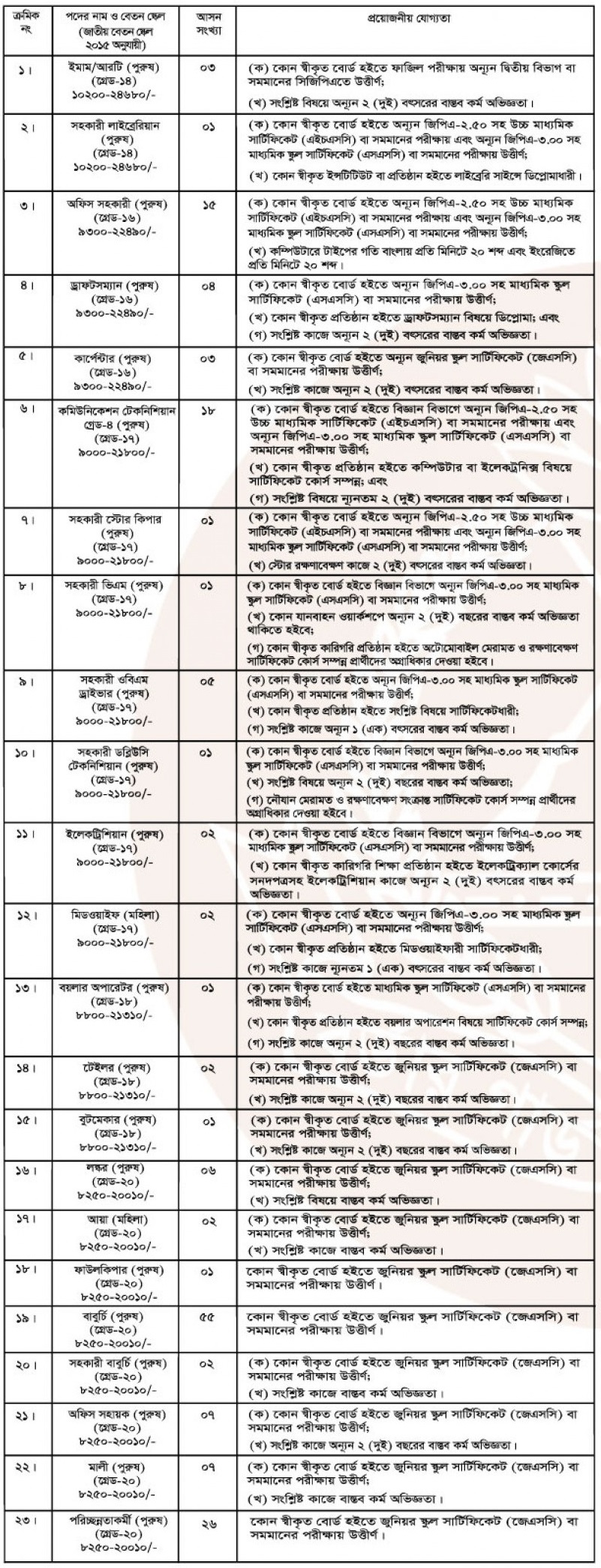 আবেদন ফি: ১-৫ নং পদের জন্য ১১২ টাকা, ৬-২৩ নং পদের জন্য ৫৬ টাকা অফেরতযোগ্য হিসেবে পাঠাতে হবে।
