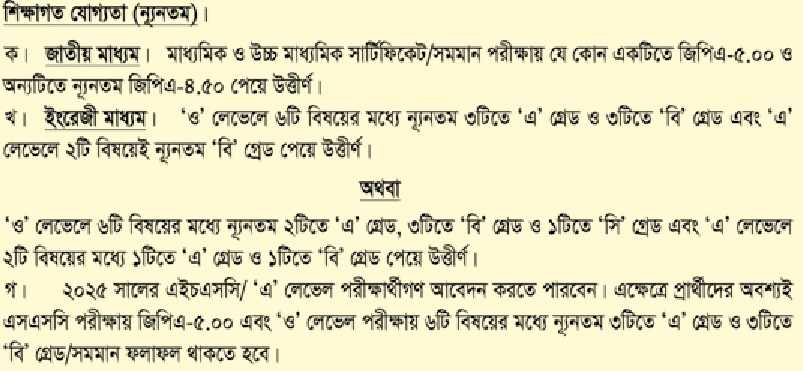 বয়স: ০১ জুলাই ২০২৬ তারিখে সাড়ে ১৬-২১ বছর। সশস্ত্র বাহিনীতে কর্মরত প্রার্থীদের ক্ষেত্রে ১৮-২৩ বছর।