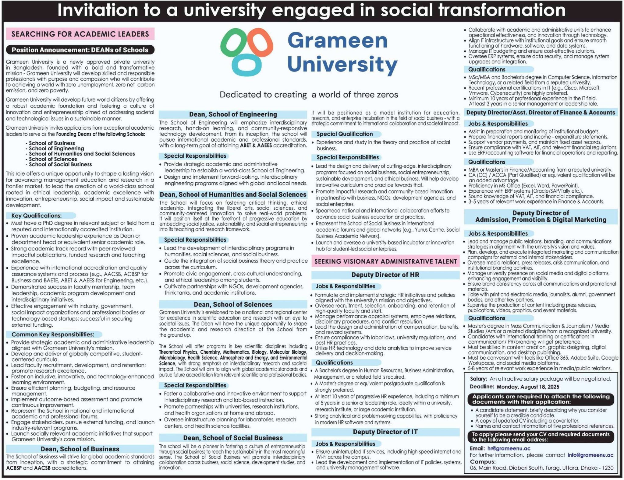 শিক্ষক-পরিচালক পদে নিয়োগ দিচ্ছে গ্রামীণ বিশ্ববিদ্যালয়