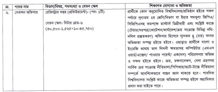 বয়স: ১৬ অক্টোবর ২০২৫ তারিখ সর্বোচ্চ ৩৫ বছর। তবে অভিজ্ঞতা সম্পন্ন প্রার্থীদের ক্ষেত্রে বয়সসীমা শিথিলযোগ্য।
