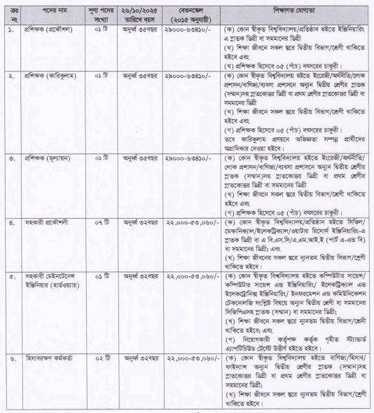 বয়স: ২৬ অক্টোবর ২০২৫ তারিখ সর্বোচ্চ ৩৫ বছর। বয়স প্রমাণে ক্ষেত্রে কোনো প্রকার এফিডেভিট গ্রহণযোগ্য হবে না।