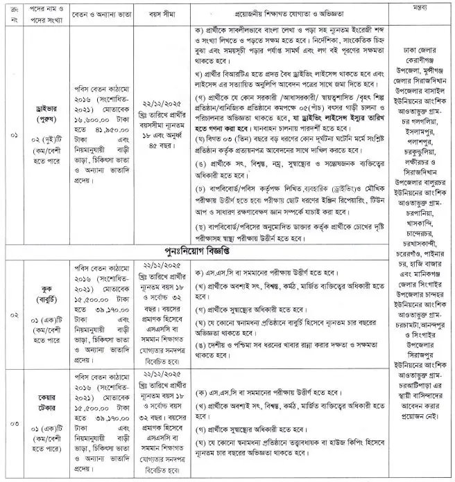 আবেদনের শেষ সময়: ২২ ডিসেম্বর ২০২৫ তারিখ অফিস চলাকালীন সময় পর্যন্ত আবেদন করতে পারবেন।