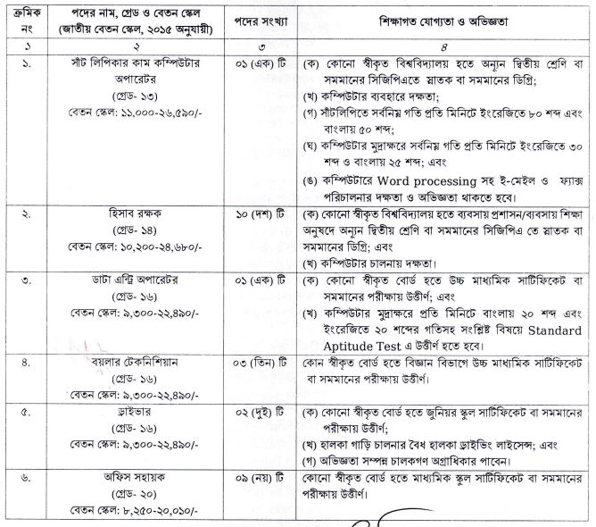 আবেদন ফি: টেলিটক প্রি-পেইডের মাধ্যমে ১-৫ নং পদের জন্য ১১২ টাকা, ৬ নং পদের জন্য ৫৬ টাকা অফেরতযোগ্য হিসেবে ৭২ ঘণ্টার মধ্যে জমা দিতে হবে।