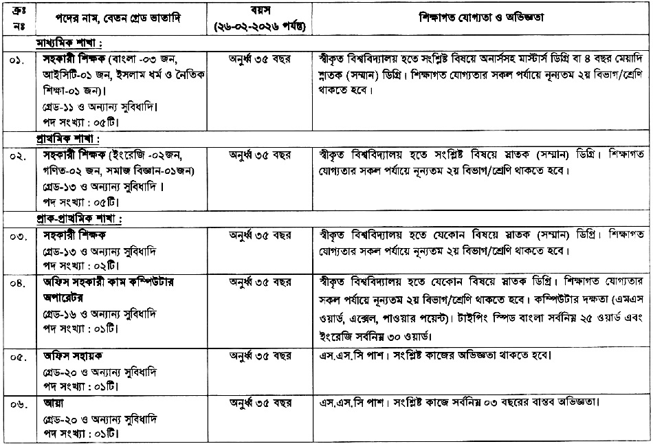 বয়স: ২৬ ফেব্রুয়ারি ২০২৬ তারিখে সর্বোচ্চ ৩৫ বছর