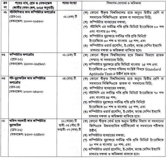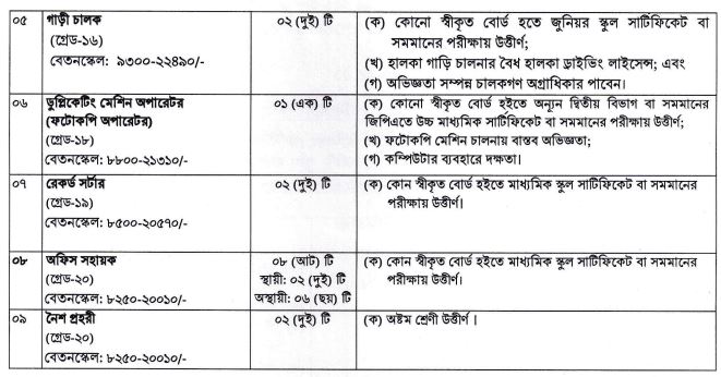 আবেদন ফি: টেলিটক প্রি-পেইডের মাধ্যমে ১-৫ নং পদের জন্য ১১২ টাকা, ৬-৯ নং পদের জন্য ৫৬ টাকা অফেরতযোগ্য হিসেবে ৭২ ঘণ্টার মধ্যে জমা দিতে হবে।