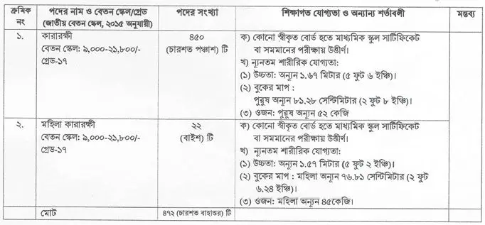 ৪৭২ জনকে নিয়োগ দেবে কারা অধিদপ্তর, এসএসসি পাসেই আবেদন