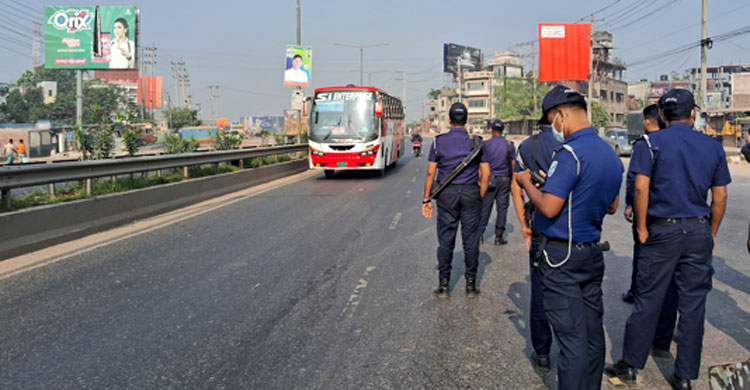 ঢাকার প্রবেশদ্বার আমিনবাজারে পুলিশের চেকপোস্ট, যানচলাচল স্বাভাবিক