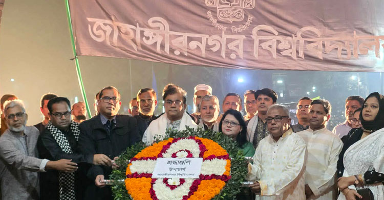 যথাযোগ্য মর্যাদা ও ভাবগাম্ভীর্যের মধ্য দিয়ে জাহাঙ্গীরনগর বিশ্ববিদ্যালয়ে শহীদ দিবস ও আন্তর্জাতিক মাতৃভাষা দিবস পালিত হয়েছে। শনিবার (২১ ফেব্রুয়ারি) দিবসের প্রথম প্রহরে বিশ্ববিদ্যালয়ের কেন্দ্রীয় শহীদ মিনারে ফুল দিয়ে ভাষা শহীদদের প্রতি শ্রদ্ধা নিবেদন করেন উপাচার্য অধ্যাপক ড. মোহাম্মদ কামরুল আহসান।