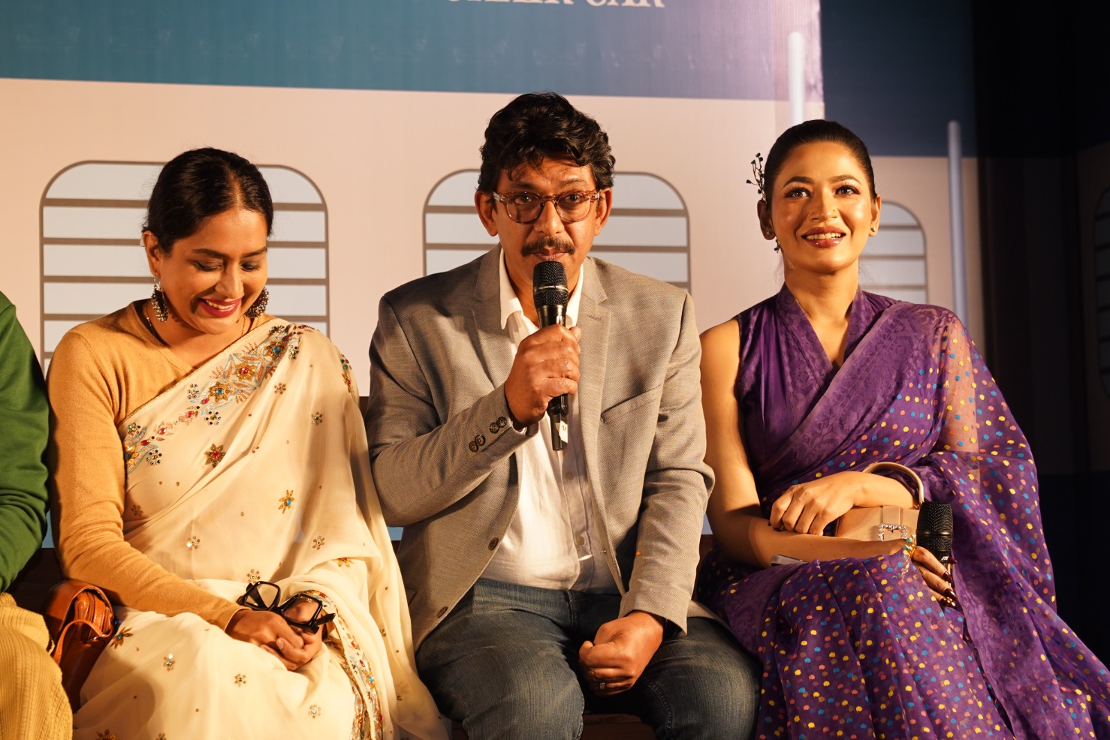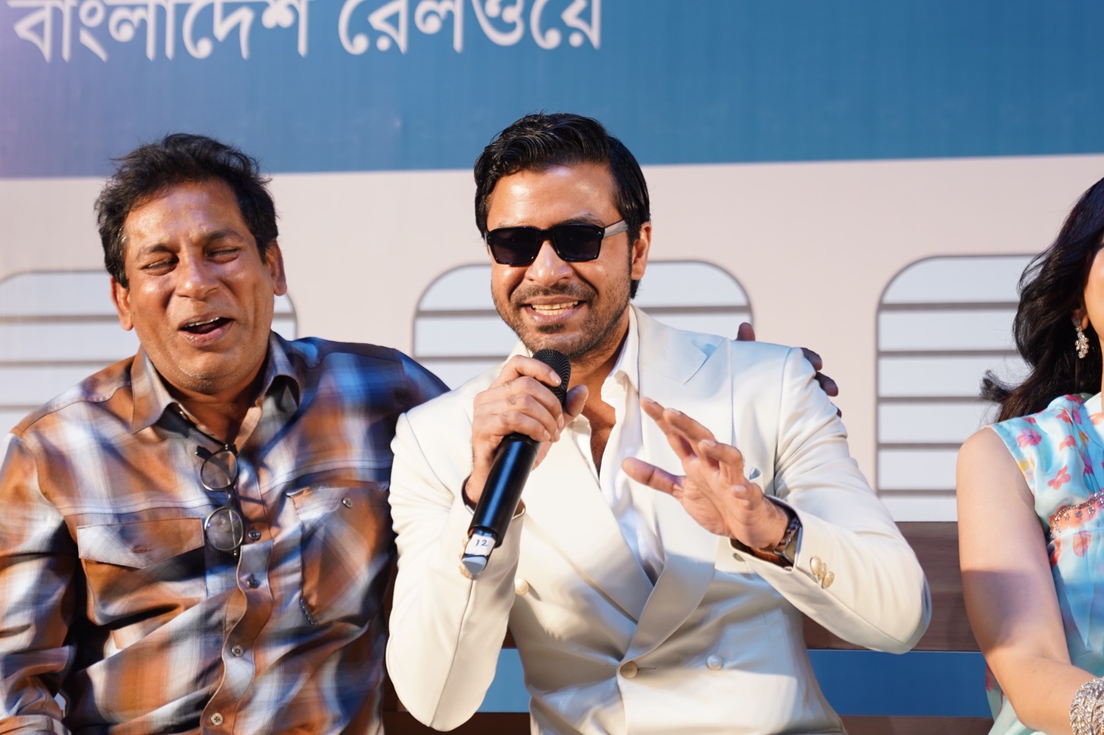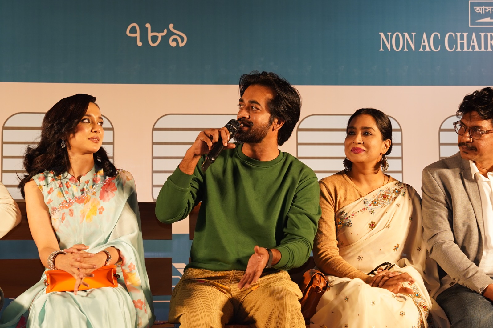 গল্পের প্রয়োজনে ট্রেনের আদলে সাজানো মঞ্চে চরিত্রের নামেই ডাকা হয় শিল্পীদের। পর্দা সরতেই ট্রেন থেকে নেমে আসেন মোশাররফ করিম, চঞ্চল চৌধুরী, জাকিয়া বারী মম, আজমেরী হক বাঁধন, শরিফুল রাজ, সাবিলা নূরসহ আরও অনেকে। দর্শকদের সামনে উন্মোচিত হয় সিনেমাটির বিশাল ও বৈচিত্র্যময় অভিনয়শিল্পীর তালিকা।