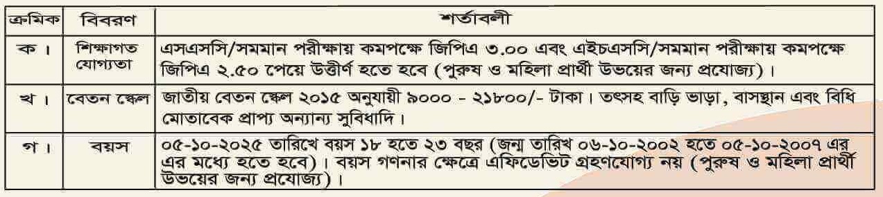 বয়স: ০৫ অক্টোবর ২০২৫ তারিখ সর্বনিম্ন ১৮ বছর এবং সর্বোচ্চ ২৩ বছর