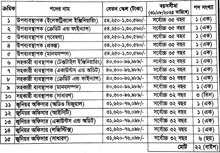 বয়স: ৩১ আগস্ট ২০২৫ তারিখ ১৮-৩২ বছর। বয়স প্রমাণের ক্ষেত্রে কোনো প্রকার এফিডেভিট গ্রহণযোগ্য হবে না।