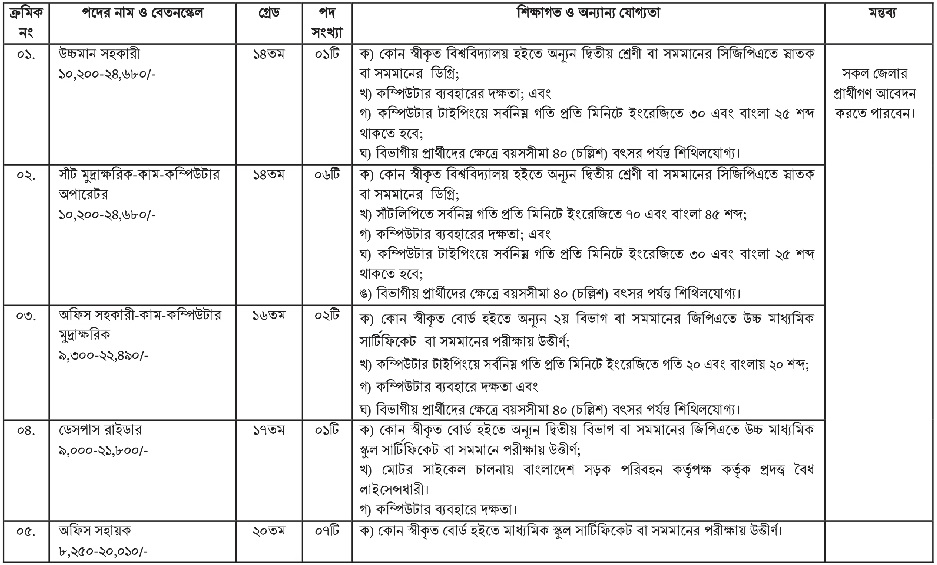 আবেদন ফি: টেলিটক প্রি-পেইড সিমের মাধ্যমে ১-৩ নং পদের জন্য ১১২ টাকা, ৪-৫ নং পদের জন্য ৫৬ টাকা অফেরতযোগ্য হিসেবে ৭২ ঘণ্টার মধ্যে পাঠাতে হবে।