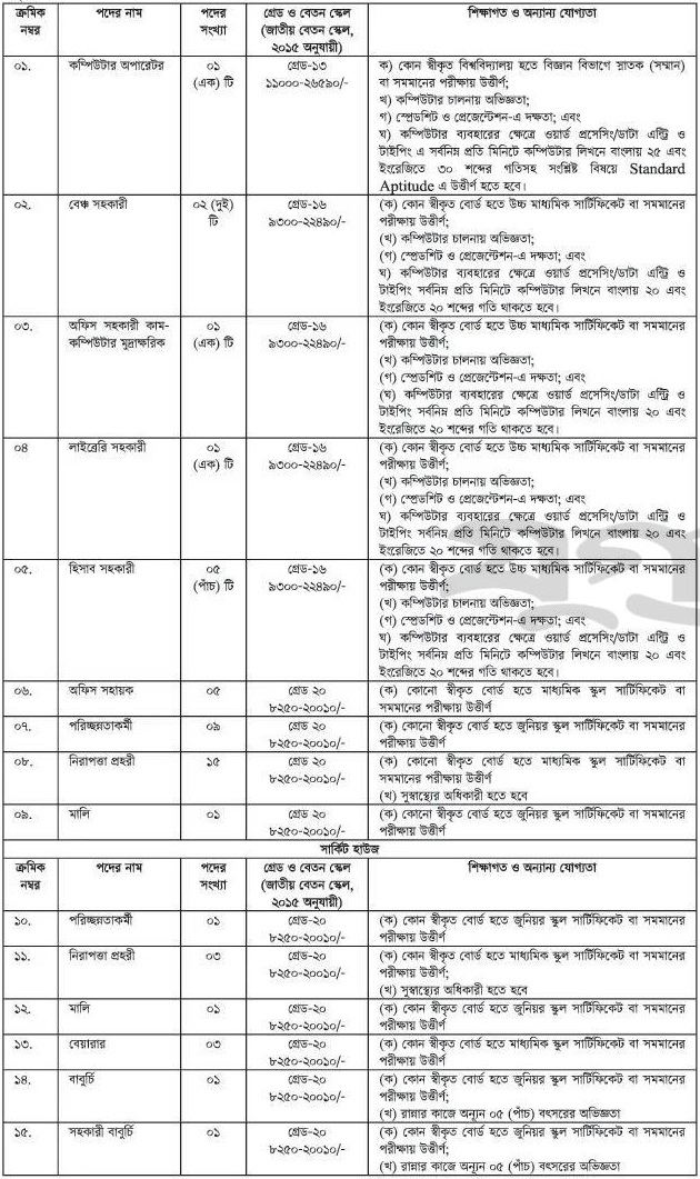 আবেদন ফি: পরীক্ষার ফি বাবদ টেলিটক প্রি-পেইড সিমের মাধ্যমে ১-৫ নং পদের জন্য ১১২ টাকা, ৬-১৫ নং পদের জন্য ৫৬ টাকা অফেরতযোগ্য হিসেবে ৭২ ঘণ্টার মধ্যে পাঠাতে হবে।