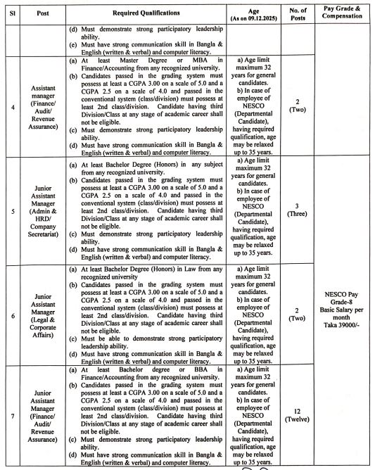আবেদনের নিয়ম: আগ্রহীরা এখানে ক্লিক করে নর্দান ইলেক্ট্রিসিটি সাপ্লাই কোম্পানি পিএলসি (নেসকো) আবেদন সম্পন্ন করতে হবে। আবেদনের সঙ্গে ৩০০-৩০০ সাইজের ছবি ও ৩০০-৮০ সাইজের স্বাক্ষর স্ক্যান করে যুক্ত করতে হবে।