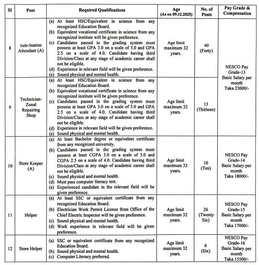 নর্দান ইলেক্ট্রিসিটি সাপ্লাই কোম্পানি পিএলসিতে (নেসকো) ১২টি পদে ১৩৭ জনকে নিয়োগ দেওয়া হবে। আগ্রহীরা আগামী ৩১ ডিসেম্বর পর্যন্ত অনলাইনের মাধ্যমে আবেদন করতে পারবেন। ৪৫ বছর বয়সের প্রার্থীরাও আবেদনের সুযোগ পাবেন।