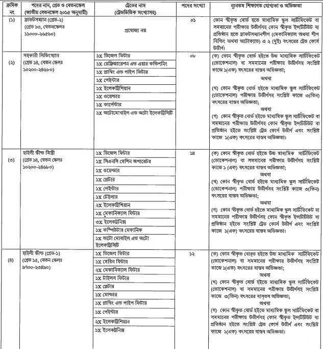 নৌবাহিনীর বেসামরিক কর্মচারী পদে নিয়োগ বিজ্ঞপ্তি, পদ ১১০টি