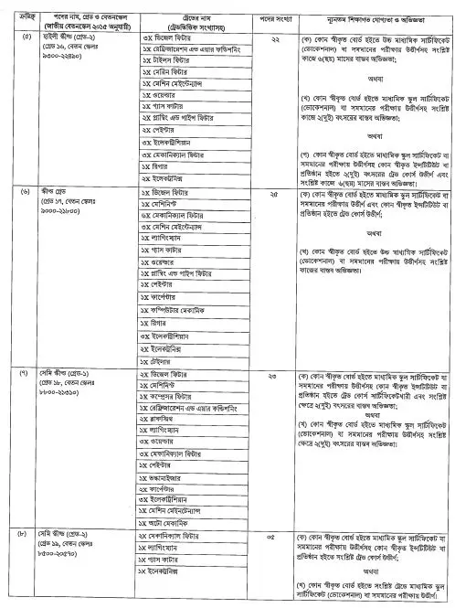 আবেদন ফি: টেলিটক প্রি-পেইড সিমের মাধ্যমে ১-৫ নং পদের জন্য ১১২ টাকা, ৬-৮ নং পদের জন্য ৫৬ টাকা অফেরতযোগ্য হিসেবে ৭২ ঘণ্টার মধ্যে পাঠাতে হবে।
