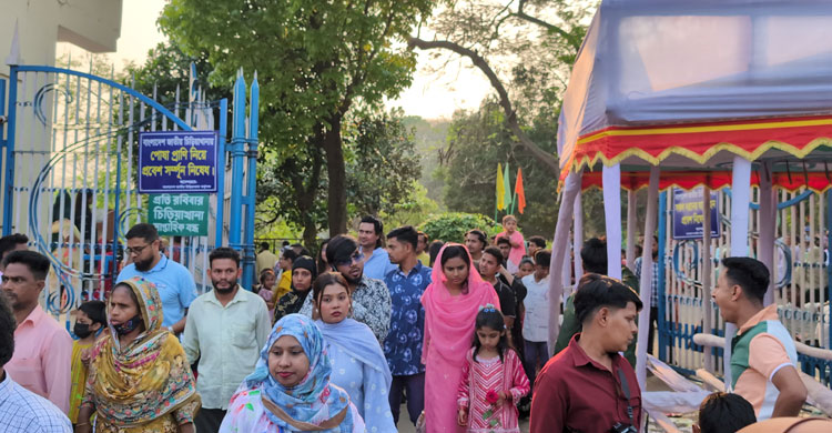 প্রধান ফটক থেকে শুরু করে টিকিট কাউন্টার পর্যন্ত ছিল দীর্ঘ সারি। ভেতরে প্রবেশ করলে দেখা যায় বাঘ, সিংহ, হাতি, জিরাফ, হরিণ ও বানরসহ বিভিন্ন প্রাণীর খাঁচার সামনে উপচেপড়া ভিড়। শিশুরা কৌতূহলী দৃষ্টিতে প্রাণীগুলো দেখছে এবং অভিভাবকদের নানা প্রশ্ন করছে। অনেকে স্মৃতিময় মুহূর্তগুলো ধরে রাখতে ব্যস্ত ছিলেন ছবি ও ভিডিও ধারণে।