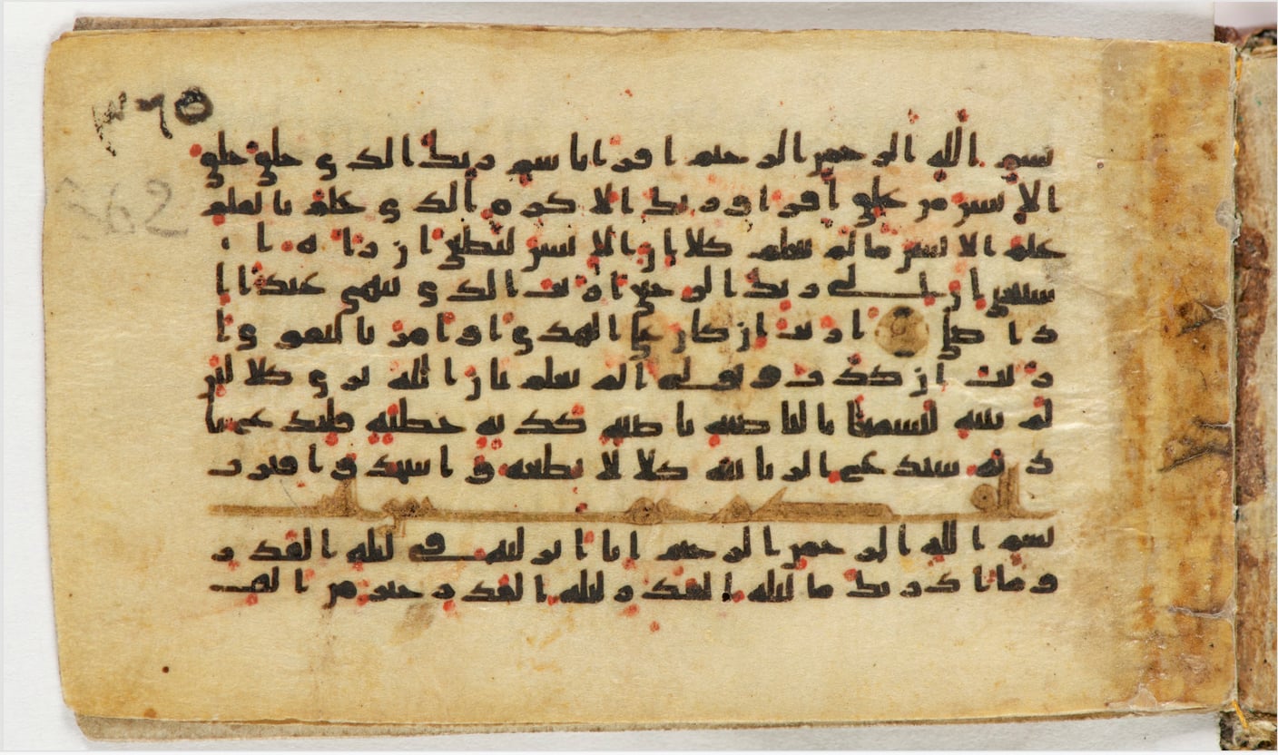 আনুমানিক ৮০১ খ্রিষ্টাব্দে সম্রাট শার্লেমাইনের কাছে পাঠানো খলিফা হারুনুর রশিদের কোরআন। এখানে ওয়াকফের কোনো চিহ্ন নেই। ছবি: সংগৃহীত