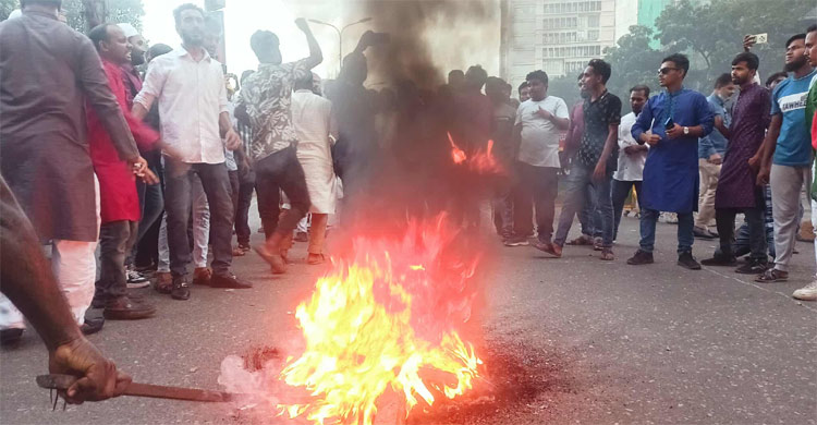 পল্টন মোড়ে আগুন জ্বালিয়ে গণঅধিকার পরিষদের বিক্ষোভ