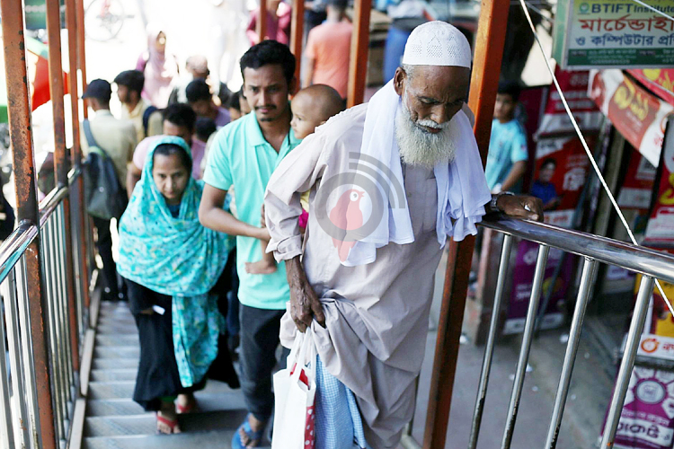 ফুট ওভারব্রিজের সিঁড়ি অপ্রয়োজনীয় উঁচু হওয়ায় বয়স্কদের উঠতে সমস্যা হয়/ছবি- মাহবুব আলম