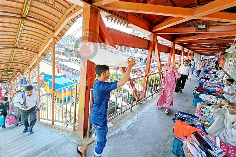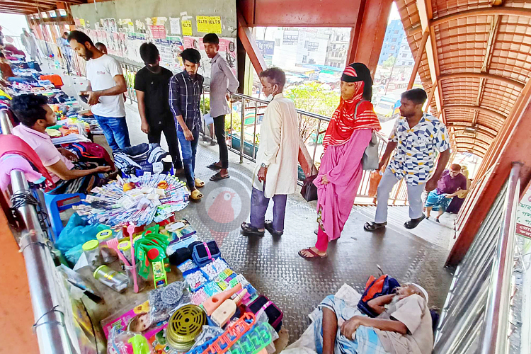 হকারদের দখলে ঢাকার ফুট ওভারব্রিজ, চলাচলবান্ধব নয় সিঁড়ি