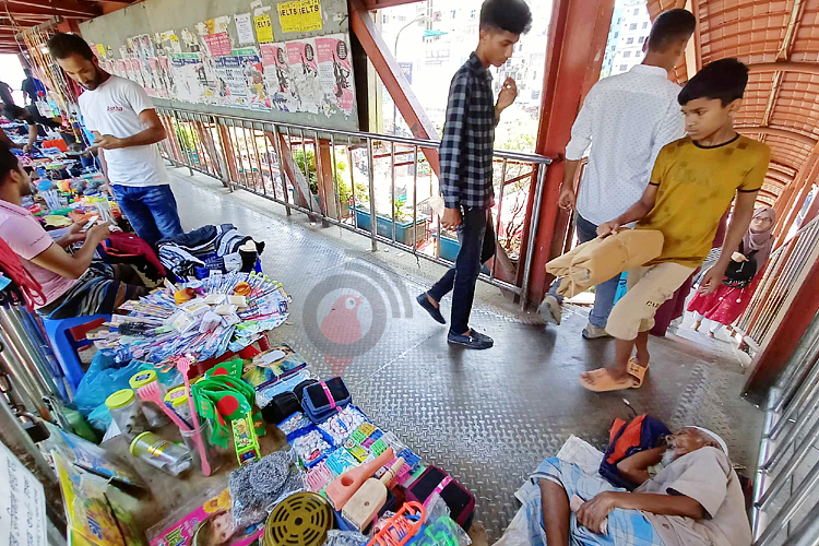 রাজধানীর অধিকাংশ ফুট ওভারব্রিজ হকারদের দখলে/ছবি- মাহবুব আলম