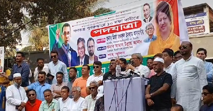 শনিবার (৪ মার্চ) বিকেলে রাজধানীর উত্তরায় বিএনপির এক পদযাত্রা শেষে সংক্ষিপ্ত সমাবেশে এ কথা বলেন মির্জা ফখরুল ইসলাম আলমগীর। সরকারের পদত্যাগ ও তত্ত্বাবধায়ক সরকারসহ বিভিন্ন দাবিতে এ পদযাত্রা কর্মসূচি পালন করে বিএনপি।