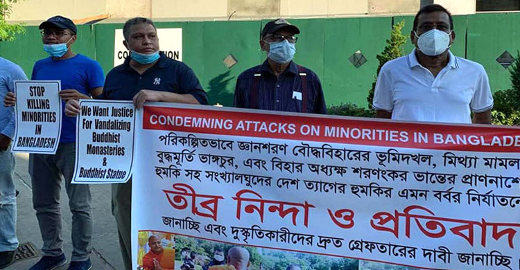 রাঙ্গুনিয়ায় বৌদ্ধ বিহারে হামলার ঘটনায় নিউ ইয়র্কে প্রতিবাদ