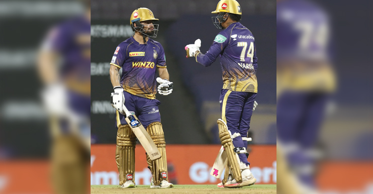 ২১১ রানের লক্ষ্যে ব্যাট করতে নেমে শুরুতেই দুই ওপেনার ভেঙ্কটেশ আয়ার এবং আভজিত টোমারের উইকেট হারায় কেকেআর। আয়ার তো কোনো রানই করতে পারেননি। আবজিত করেন ৪ রান। এরপর ঘুরে দাঁড়ায় কেকেআর। নিতিশ রানা এবং শ্রেয়াস আয়ার মিলে হাল ধরেন। ২২ বলে ৪২ রান করে আউট হন নিতিশ রানা। ৯টি বাউন্ডারির মার মারেন তিনি।