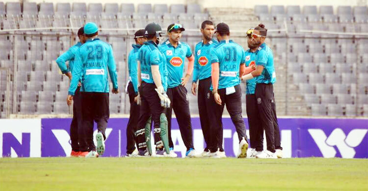 জবাব দিতে নেমে সাইফ হাসান ৫৮ রান করে দারুণ সূচনা এনে দেন। যদিও অন্য প্রান্তে নিয়মিত বিরতিতে উইকেট পড়তে থাকে। সৈকত আলী করেন ২৬ রান, ৩৬ রান করেন ফজলে মাহমুদ রাব্বি। তার দূর্ভাগ্য, রান আউট হয়ে যান তিনি।