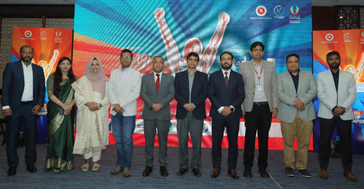 সংবাদ সম্মেলনে প্রতিযোগিতার লোগো উন্মোচন করেন যুব ও ক্রীড়া মন্ত্রণালয়ের যুগ্মসচিব কাজী মোশতাক জহির।