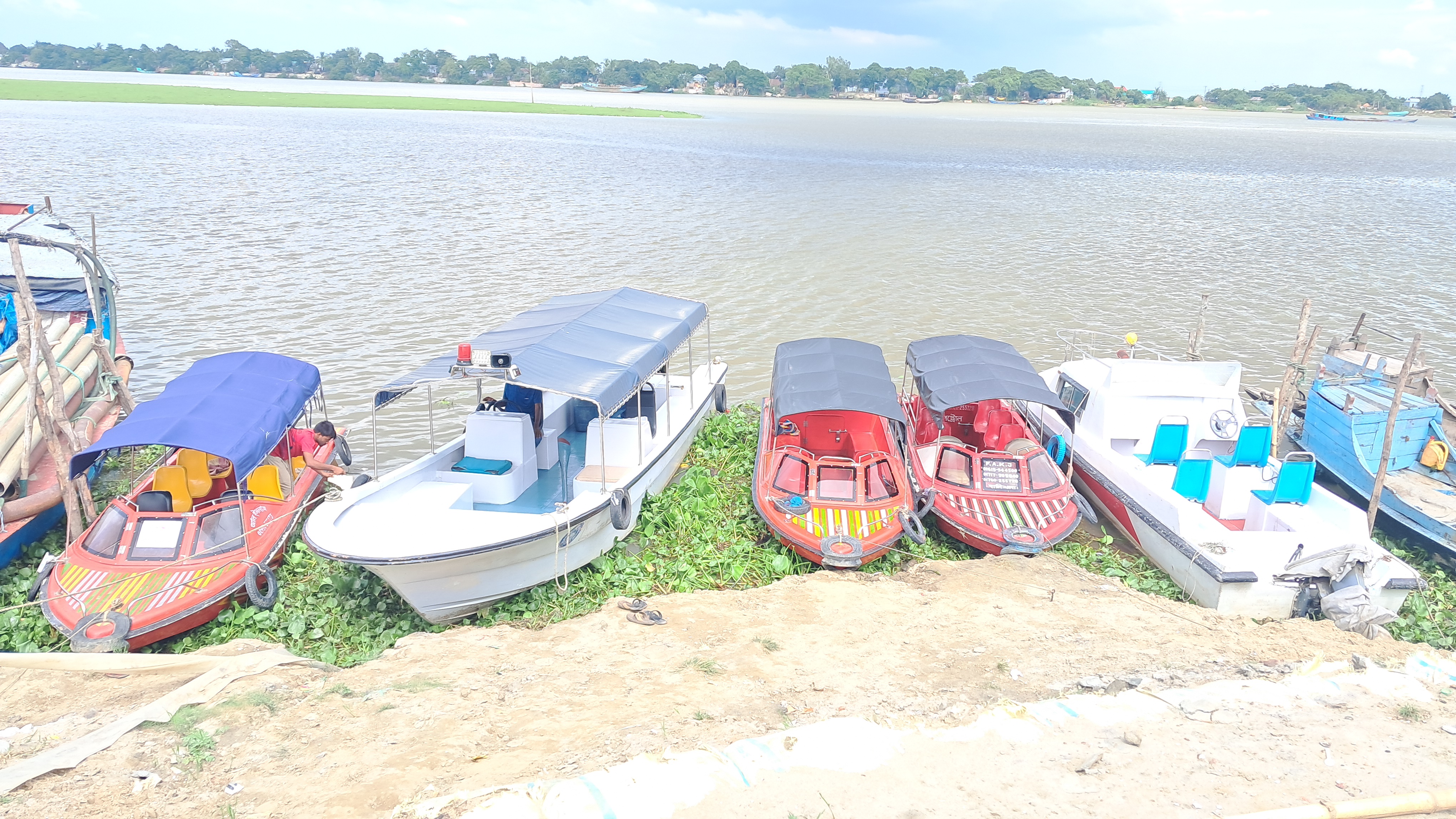 পর্যটক না থাকায় ঘুরছে না নৌকা আর স্পিডবোটের ইঞ্জিন। শুয়ে-বসে অলস সময় পার করছেন নৌকার মাঝিরা।